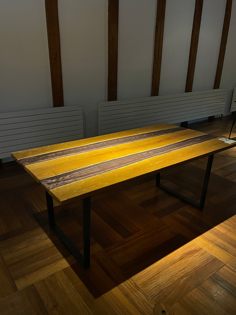 新開発の会津UV漆塗料は、店舗用の内装など大きな面積にも対応可能であり、傷が付きにくい性質も持っています。また、木材のみならず金属、プラスティック、ガラスなど今までの漆器とは違った材質にも漆塗装が可能です。